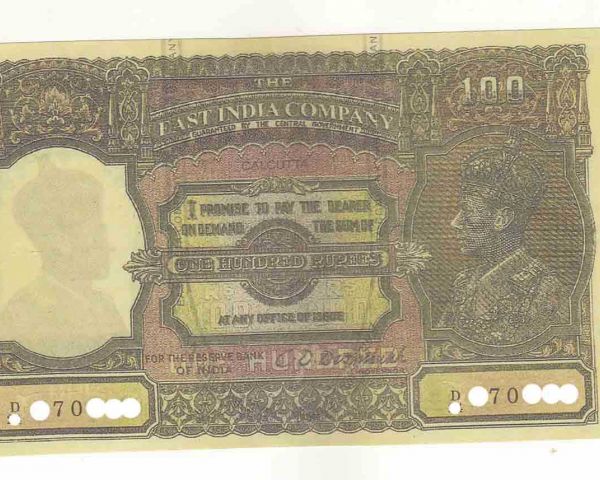 For Sale East India Company Rs 100 Hundred Rupees Eagle C D Deshmukh Famous Fancy Note