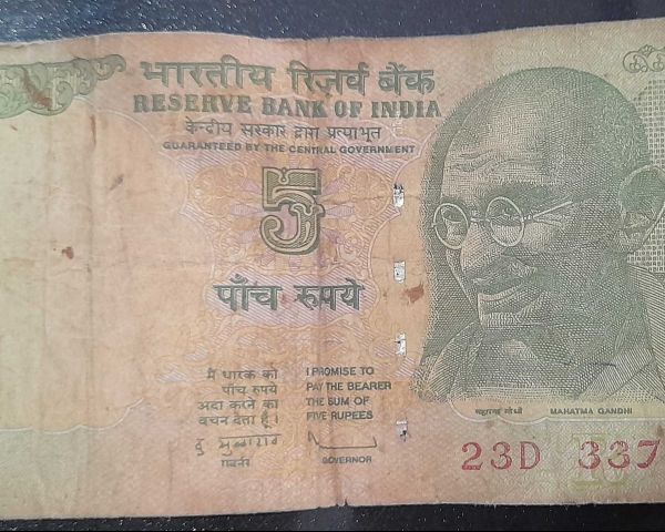 Old Rare Indian Five Rupees Note