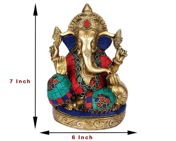 Color- Multi Color Product Dimensions- 6 x 6 x 7 Inch / 13 cm x 10 cm x 17 cm Item Weight- 2.15 Kg Shipping Weight- 2.25 kg Primary Material- Brass Capacity- Standard Number of Pieces- 1 What is in the box? - 1 Unit PNF Craft Decorative Brass Ganesha Idol Manufacturer- PNF Craft Product information- PNF Craft This colorful brass Ganesha statue is painted in Turquoise, red and indigo colors and some semi precious stones to give it a festive look. Dream Home Treasures Colorful Large Ganesha Idol Brass Deity (Turquoise). Brass Ganesha Long Ear Ganesha Idol.Brass Made from Quality Brass and Handmade in India. Hindu God Ganesha Statue is the Lord of success and destroyer of evils and obstacles. Lord Ganesha Statue is known to Bring prosperity and happiness in your home & Office.