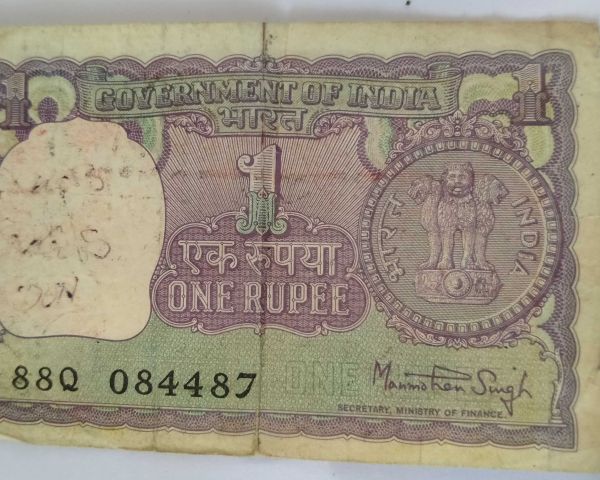 Old currency note of one rupee