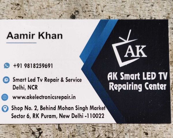 Ak Smart LED TV Repairing Center in Rk Puran Delhi Shop No. 2 Behind Mohan Singh Market Sector 6 Rk Puram New Delhi 110022 We provide home palace TV repair service LED TV Repair, LCD TV Repair, TV Repair, Smart TV repair, TV repair multi brand.