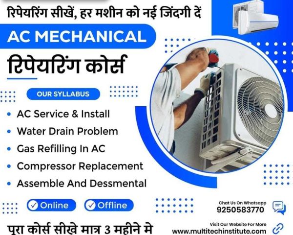 Ac Mechanical Repairing Course is a short term professional course, join Ac mechanical course at Best Ac Mechanical Repairing Institute In Delhi For More Call now.