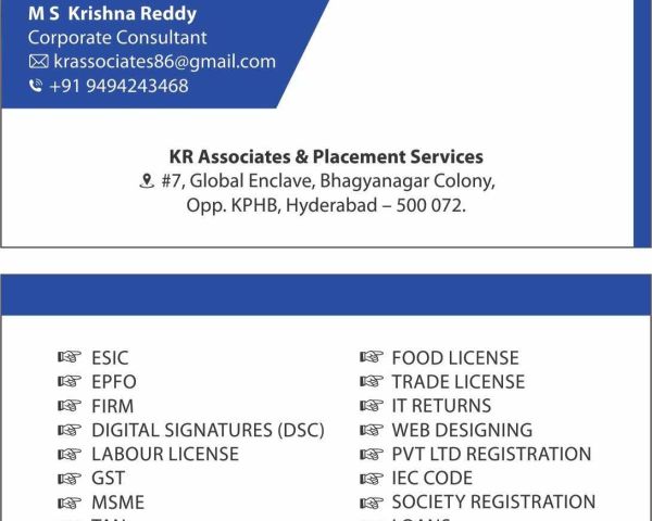SERVICES: -> PF Registration, Returns, Advances & Claims -> ESI Registration & Returns -> PT Registration & Returns -> Labour License (Or) Proprietary Firm -> Digital Signatures (DSC) -> Insurances (Health, Life & Term) -> HDFC Agents Recruiting -> IT Returns Etc...