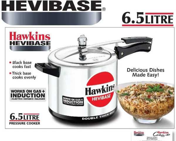 The Hawkins Aluminium Hevibase Pressure Cooker is perfect for 7 to 9 persons. Its double-thick hard-anodised base stays flat, heats evenly, and cooks faster while working on gas, induction, electric, ceramic, and halogen cooktops. With an improved pressure regulator for fuel savings and an inside-fitting safety lid, it ensures safe and efficient cooking.