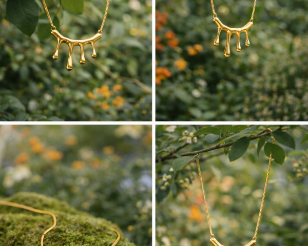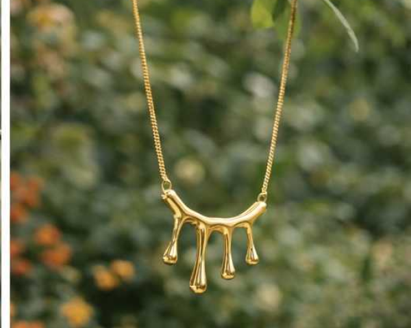 Raindrop Charm Pendant Chain Inspired by the purity of falling raindrops, this elegant pendant chain reflects calm, freshness, and new beginnings. The fluid, droplet-style design symbolises positivity, growth, and emotional balance, making it more than just jewellery it's a feeling you wear. Crafted with a smooth gold finish, this necklace catches the light beautifully, just like rain drops resting on leaves. Its minimal yet artistic design makes it perfect for everyday wear while adding a unique statement to your look. Raindrop-inspired.