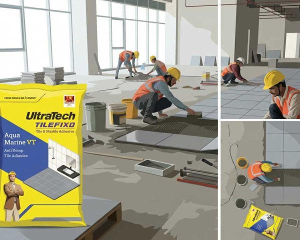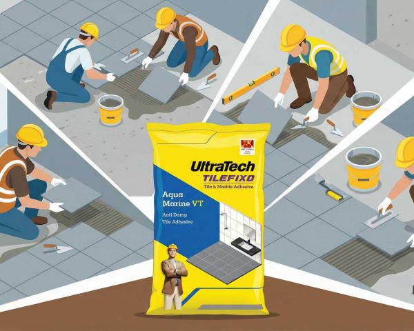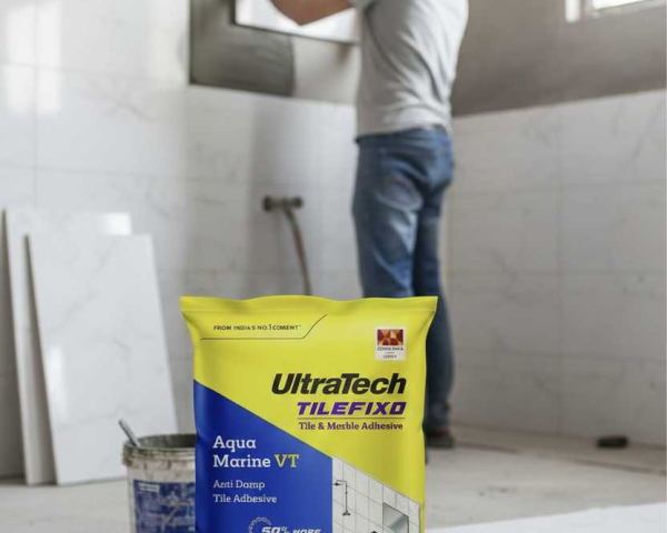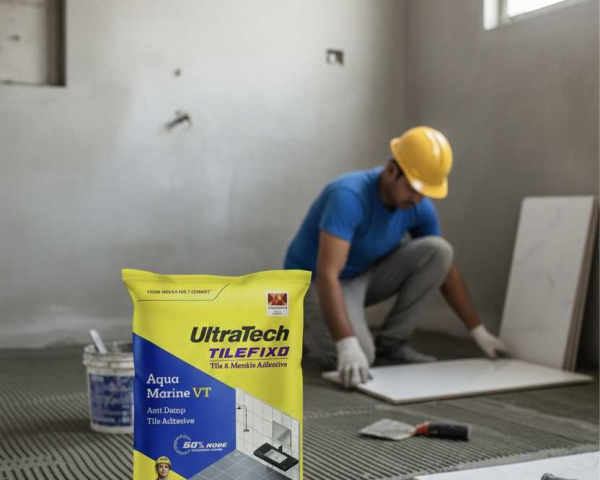 UltraTech TileFixo Aqua Marine VT is a high-performance, cement-based, polymer-modified tile adhesive specially designed for fixing vitrified tiles, ceramic tiles, natural stones, and glass mosaic tiles on walls and floors. It offers strong bonding strength, anti-damp protection, and long-lasting durability, making it ideal for both residential and commercial tile installation. Key Features: Anti-damp technology: Helps protect tiles from moisture and dampness, ideal for wet areas like bathrooms and kitchens. High bonding strength: Polymer-modified formula ensures superior adhesion and reduces tile debonding risk. Suitable for walls & floors: Can be used for tile fixing on cement plaster, concrete, and screed surfaces. Tile-on-tile application: Allows fixing new tiles over existing tiles without removing old tiles. Easy application: Ready-to-use mix with extended open time and smooth workability. Uniform and strong grip: Ensures durable tile installation with minimal hollow spaces.